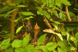 Délutánonként, ha jók voltak a fényviszonyok, akkor meg lehetett próbálni fotózni is, de csak ülni az ablak szélén és nézni őket is megfelelő elfoglaltság volt. Már amíg volt mit nézni, mert a természet is dolgozott közben és pár nap alatt új ágak nőttek és már szabad szemmel is nehéz volt kivenni, hogy mi történik a fészekben. Nem is sikerült elkapni, amikor kirepültek a fészekből, egyszer csak megszűnt a mozgolódás és már ismét üres volt a fészek.